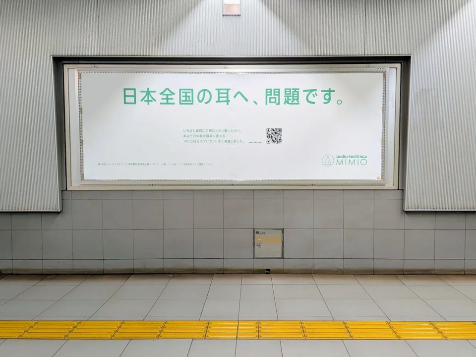 audio-technica MIMIOでは、多くの東大生が利用する都営大江戸線・本郷三丁目駅に交通広告を掲出し、「日本全国の耳」へと参加を呼びかけます。
